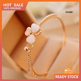 CLOVER Vòng Tay Mạ Vàng Mặt Hình Cỏ Ba Lá Đính Đá Lấp Lánh Cho Nữ