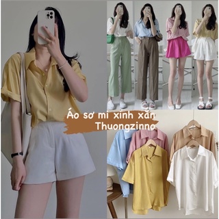 Áo Sơ Mi Tay Ngắn Màu Trơn áo sơ mi nữ Dáng Rộng Thời Trang áo sơ mi nữ phong cách Hàn Quốc áo sơ mi nam form rộng