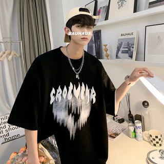 Áo Thun Tay Ngắn Dáng Rộng In Họa Tiết Phong Cách Hồng Kông Thời Trang Mùa Hè Cho Nam Size M-5XL