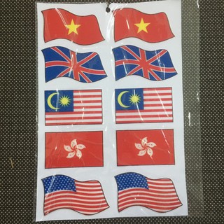 (GIẤC MƠ MỸ) BỘ TEM TRANG TRÍ XE MÁY HÌNH LÁ CỜ CÁC NƯỚC MỸ, HỒNG KÔNG, VIỆT NAM, KEO DÁN CHẮC CHẮN, TRANG TRÍ XE