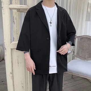Áo Khoác Ngắn Tay Màu Trơn Phong Cách Hồng Kông Đơn Giản Dễ Phối Đồ Thời Trang Mùa Hè Cho Nam Size M-2XL