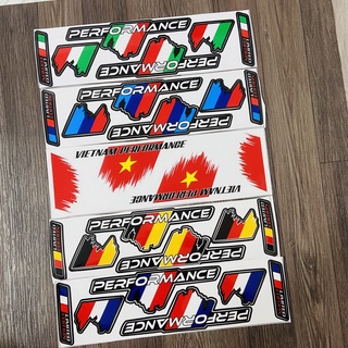 ( Performance ) Bộ tem cờ trang chí xe đẹp mắt cờ VIỆT NAM, Ý, PHÁP, ĐỨC