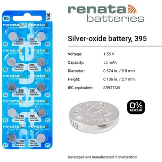 Pin đồng hồ Thụy Sỹ RENATA 395 / SR927SW oxit bạc Made in Swiss (Dạng vỉ 10 Viên)