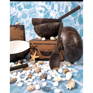 OLABEN Nutrition Combo 1 Chén Gáo Dừa Tráng Men Sứ + 1 Muỗng Gỗ Dừa Handcarved Coco