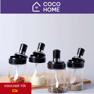 Combo 5 Hũ thủy tinh 250ml đựng gia vị có thìa thông minh Coco Home. Hũ đựng gia vị thủy tinh có thìa thông minh