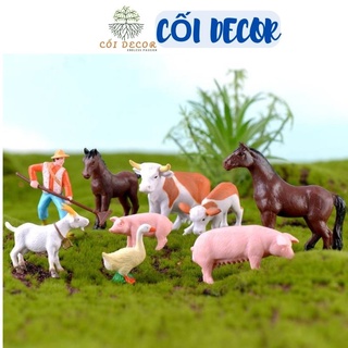 Tiểu cảnh mini ❤️ Mô hình con vật trang trại và bác nông dân trang trí sân vườn, tiểu cảnh, bàn làm việc