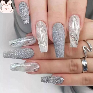 Set 24 Móng Tay Giả Kiểu Pháp Màu Lấp Lánh|Con Bướm Đen|Móng Tay Giả Hình Trái Tim Xinh Xắn