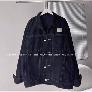 [Ảnh thật/Video]Áo khoác bò đen viền chỉ thiết kế tag da loại 1 Áo bò khoác ngoài hàng Quảng Châu