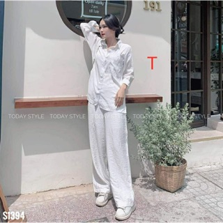 Sét bộ áo sơ mi trơn+quần đũi rộng TTB877