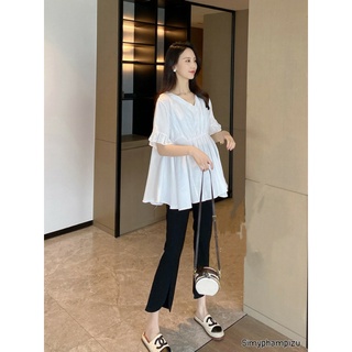 Bộ Bầu Áo Cộc Quần Dài Chất Gân Tăm Dáng Xuông Dễ Mặc Lịch Sự Đi Làm Công Sở HT4689 Honey Mommy