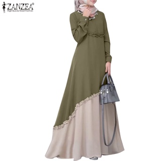 Đầm ZANZEA xòe xếp ly chữ A viền màu tương phản thời trang cho nữ