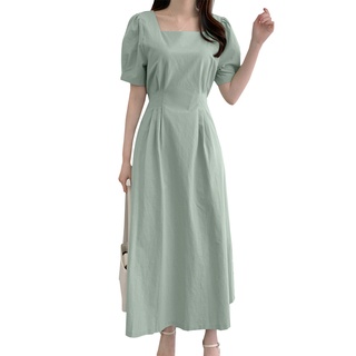 Đầm Tay Ngắn Cổ Vuông Thời Trang Mùa Xuân Hàn Quốc