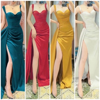 Váy dạ hội dáng dài đẹp - Đầm lụa dạ hội trễ vai dễ thương - Đầm ôm body dài đẹp.