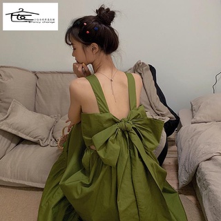 Đầm nữ ZHELIHANGFEI dài qua gối cổ vuông hở lưng cột nơ thời trang mùa hè retro