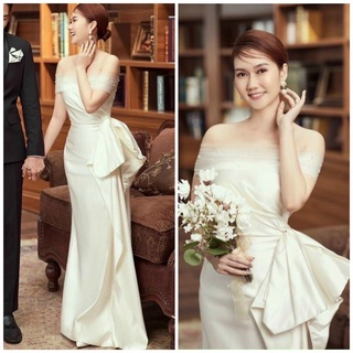 Đầm maxi mặc cưới TRIPBLE T DRESS đi bàn nhẹ nhàng cho dâu hở lưng nơ - size S/M/L -MS250Y