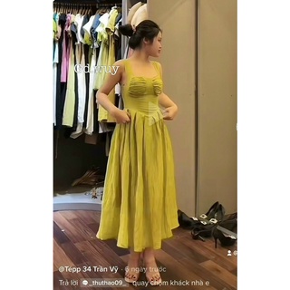 Đầm Váy Nữ Maxi Dáng Xòe, Đầm Đi Tiệc Màu Vàng Chanh Trẻ Trung Hiện Đại Cho Nàng Thời Trang Nữ Minh Phúc