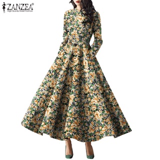 Đầm maxi Zanzea tay dài cổ tròn họa tiết hoa phong cách hồi giáo thời trang cho nữ