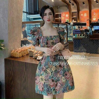 (Siêu Sale FreeShip) Đầm gấm nữ dáng xòe,đầm dự tiệc cổ vuông tay phồng xinh xắn,diện lên sang chảnh