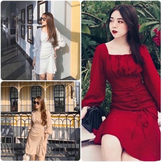 Đầm dự tiệc BlaPink thiết kế nhún ngực tay dài có dây rút-Story Dress