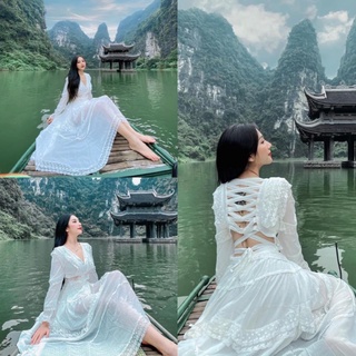 Đầm dự tiệc TD cổ tim viền ren đan dây như áo cô dâu DG 4321