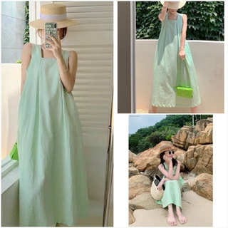 Váy 2 dây dáng dài chất đũi xước đầm maxi đi biển hai màu thoáng mát