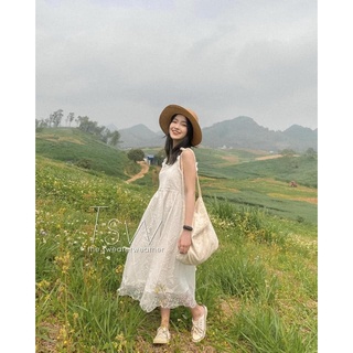 VÁY 2 DÂY HOA NHÚN NGỰC VÁY MAXI DÁNG DÀI FREESIZE