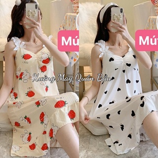{Freeship} Váy đầm ngủ 2 dây mặc nhà họa tiết hình dâu cute, vải mềm mịn có nệm ngực Vn21