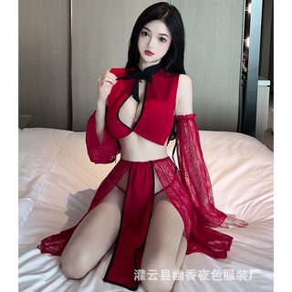 Đầm ngủ / Váy ngủ xẻ tà sườn xám kèm ống tay ren gợi cảm 2558