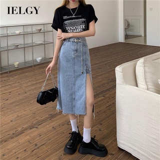IELGY Chân váy jean Xẻ Tà Lưng Cao Chống Trượt Thời Trang Cho Nữ