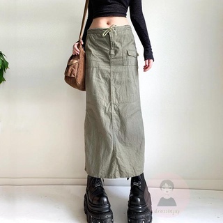 IELGY Chân Váy Dài Trung Bình Xẻ Tà Bên Hông Phong Cách harajuku niche