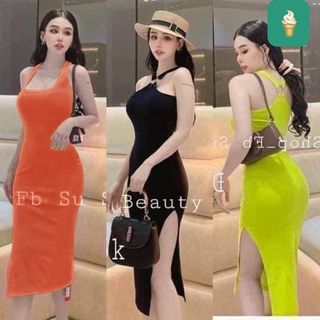 đầm nữ, đầm kiểu, đầm đẹp mặc 2 kiểu yếm hoặc ba lỗ xẻ tà khoen cực sexy chất gân