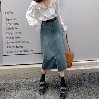 Chân Váy Denim Lưng Cao Xẻ Tà Phong Cách Retro Thời Trang Mới Cho Nữ