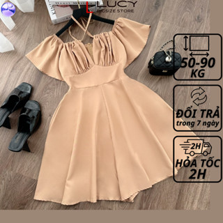Váy đầm bigsize nữ dự tiệc đi chơi kiểu jump cổ yếm cotton LUCY 50 - 90 kg