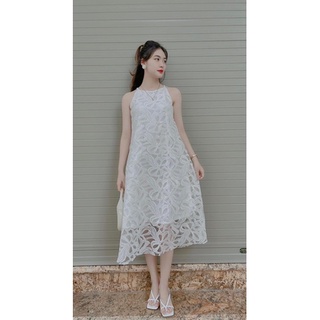 ĐẦM TRẮNG REN HOA CỔ YẾM