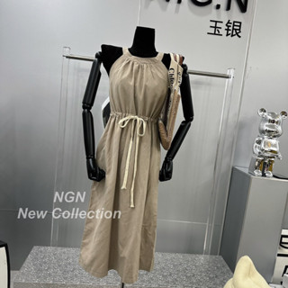 Váy linen cổ yếm rút eo