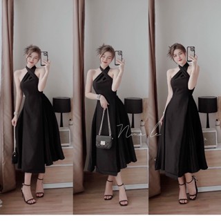 Váy đầm nữ dáng suông cổ yếm đan chéo kiểu dáng thanh lịch quyến rũ