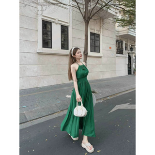Đầm thiết kế Thu Hương, váy Maxi tiểu thư sóng nhăn cổ yếm cực xinh. Váy đẹp dự tiệc