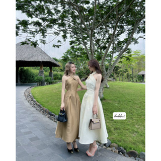Đầm maxi đi biển váy maxi cổ yếm dáng xòe 3 màu siêu xinh, đầm đũi dáng dài - Tirahouse