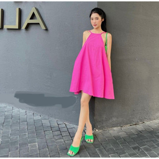 ( MIỄN PHÍ SHIP 2022) Đầm cổ yếm dáng suông dài, váy yếm cột nơ sau mặc sống ảo, đi biển sang chảnh, đầm mặc nhóm - đt