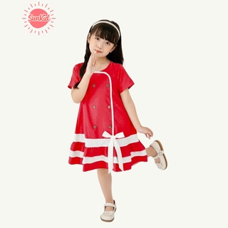 Váy đầm bé gái đỏ dáng suông thắt nơ vải trượt nhật cao cấp mùa hè Sunkid SM màu đỏ size trẻ em 4-12 tuổi