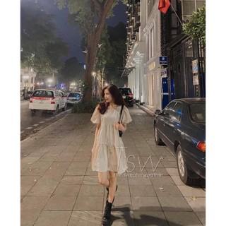 Đầm - Váy babydoll cổ vuông tay bồng Hàn Quốc