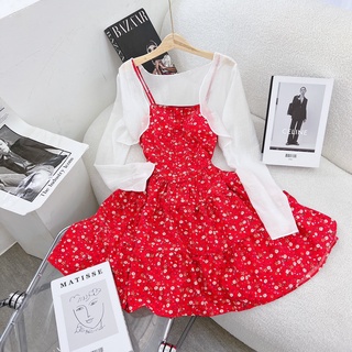 Đầm Đỏ In Hoa Phong Cách Kikyo Pháp Ngọt Ngào Cho Nữ