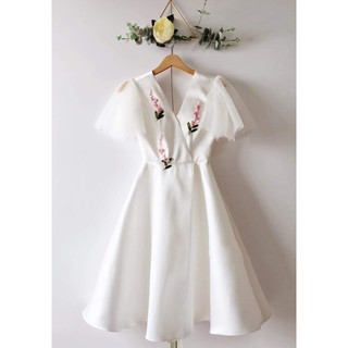 ĐẦM VÁY THIẾT KẾ DỰ TIỆC, ĐẦM TRẮNG THÊU HOA LAVENDER THANH LỊCH