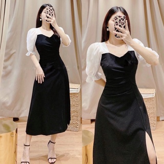 Đầm dự tiệc cổ vuông tay phồng 2 màu đen và trắng