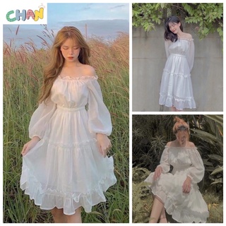Đầm trắng tiểu thư dự tiệc trễ vai Váy trắng siêu mlem có mút lót ngực