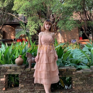 Đầm dự tiệc cổ yếm tùng 2 tầng siêu yêu