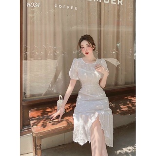 Váy trắng sang chảnh dự tiệc đầm nữ thiết kế dáng suông phối ren HN Clothing V123