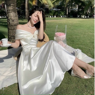 Đầm Trễ Vai Nơ Dáng Chữ A , Đầm Trễ Vai Dự Tiệc Sang Trong