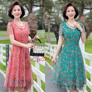 Váy Đầm trung niên nữ cho mẹ phối hoa cao cấp V81 - Áo đầm kiểu thời trang dự tiệc dạ hội đẹp cho người lớn tuổi Bigsize