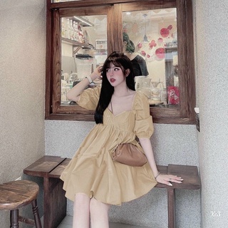 [ẢNH THẬT CUỐI] Đầm Váy Nữ Cổ Vuông Nhúng Ngực Tay Bồng Xẻ Tà Sang Chảnh, Đầm Nữ Dự Tiệc Dáng Xòe Nút Bọc 5 Màu - DX756